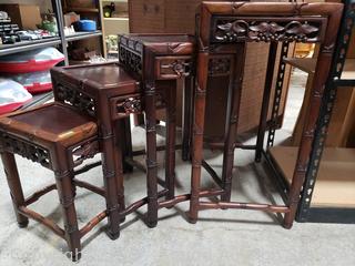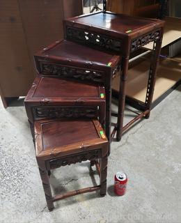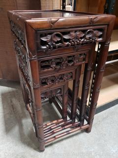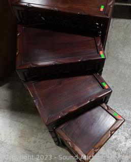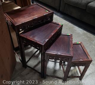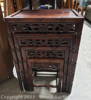 Lot #0025: Set of 4 Carved Wood Nesting Table Set