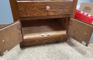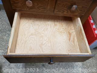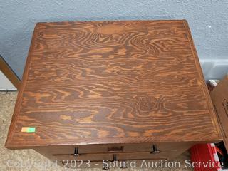 Lot #0296: Stained Plywood 3-Drawer Side Table Cabinet
