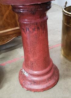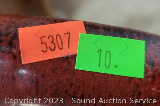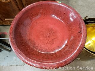 Lot #0010: 2pc Red Glazed Pottery Bird Bath