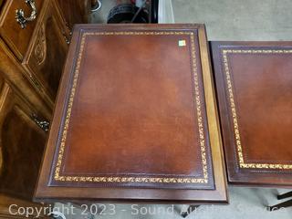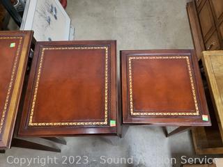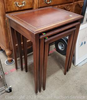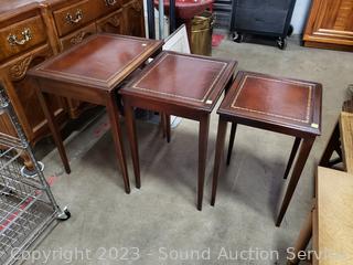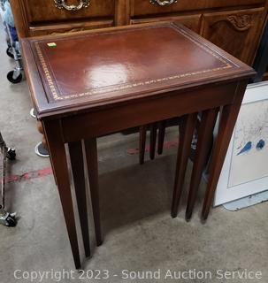 Lot #0008: 3pc Mahogany Leather Top Nesting Table Set