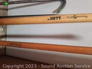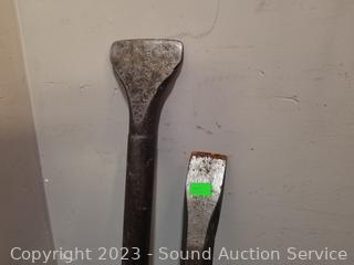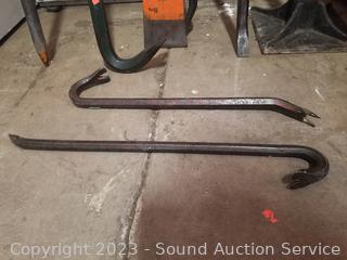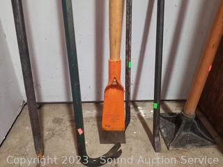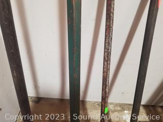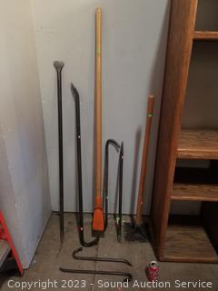 Lot #0293: 5 Crowbars, Digging Bar, 8x8 Tamper, 4" Scrapper