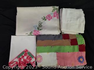 Lot #0109: Assorted Quilted Embroidered & Other Linens