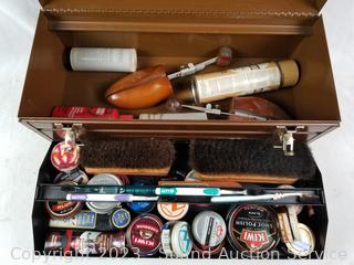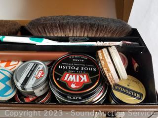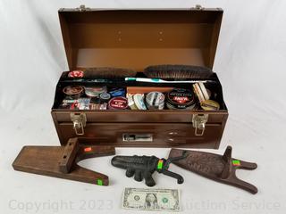 20" tool box full of brushes, various polish, shoe horns. Refer to photos for lot contents.