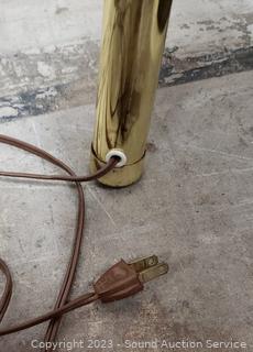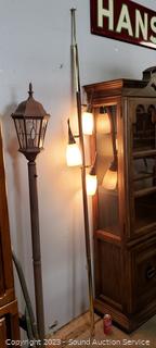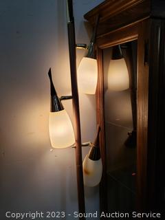 3 Light modes, 1, 2, All. Bottom missing adjusting rod, one shade, melted & cracked. 8ft tall overall.