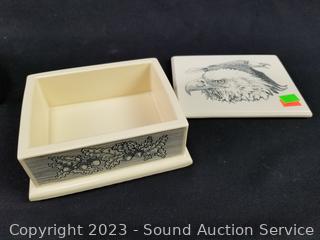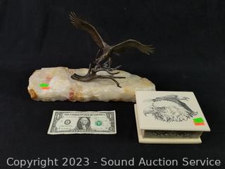 Lot #0117: R. Hurst Signed Bronze Eagle Figure & Trinket Box