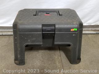 13" H x 18" x 11". Signs of wear from use. Removable tray insert.