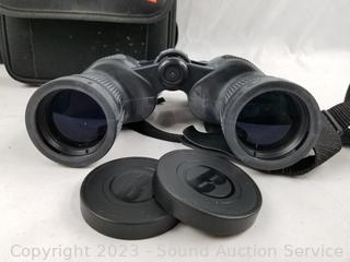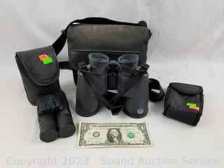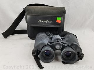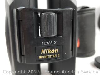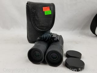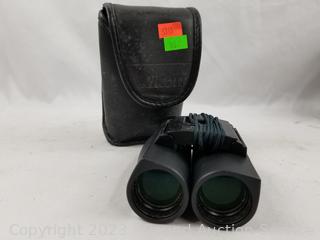 Nikon 10x25, Eddie Bauer 12x42. Comes with spare Bushnell case.