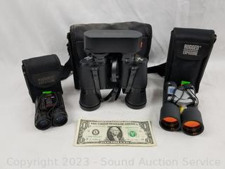 Rugged Exposure 8x21 & 16x32 (like new), Bushnell Birder 8x40 binoculars.
