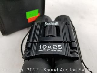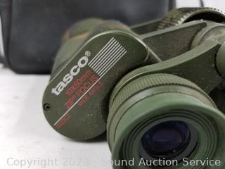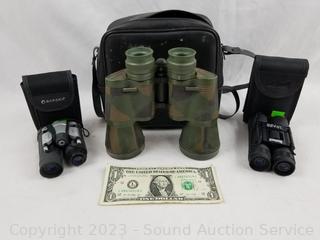 Barska 8x21, Bushnell 10x21, Tasco 10x50 binoculars.