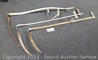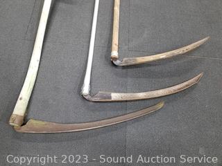 2 with homemade handles. 20", 24" & 28" long blades. Various weathering, rust, wear.