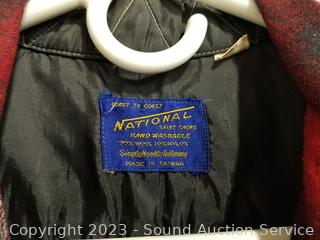 National S:M, Woolrich all S:S. Also comes with a white pair of Dockers slacks S:12. Don't see any major issues.