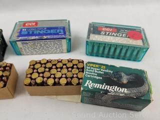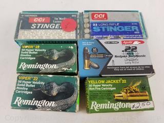 2 boxes Viper 22, 1 box yellow jacket 22, 2 boxes Stinger and 1 box SSS Sniper Sub Sonic. All appear to be full.