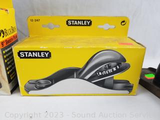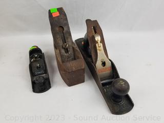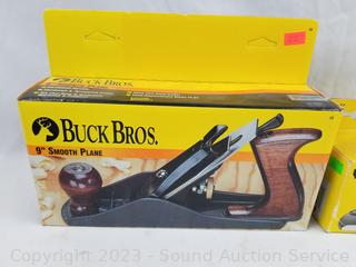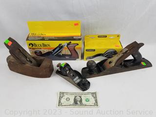 Buck Bros. 9" & Stanley w/original box. Bailey No.5, other Stanley & wood block plane. Refer to photos for more info.