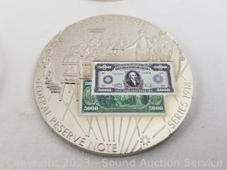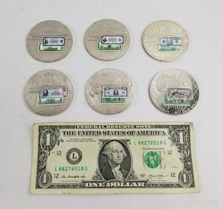 $50 St. Louis Federal Reserve Bank Note, $2 Battleship Bank Note, $50 Ulysses Grant Bank Note, $1 Educational Note, $100 National Bank Note, $5000 Federal Reserve Note. ATTN: We are not coin or currency experts or graders, please use your own judgement when bidding.