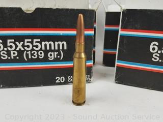Lot #0091: 76 Rounds 6.5x55mm S.P. 139gr Ammunition