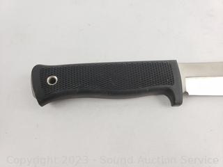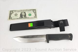 In excellent condition. 11" long, 6" blade. Plastic sheathe.