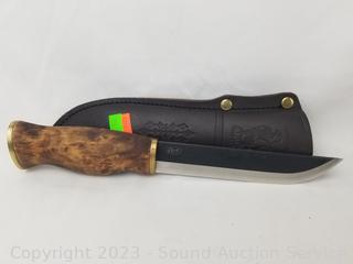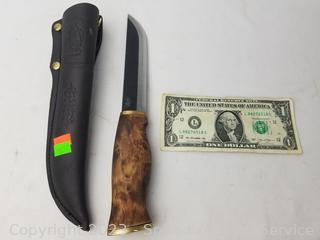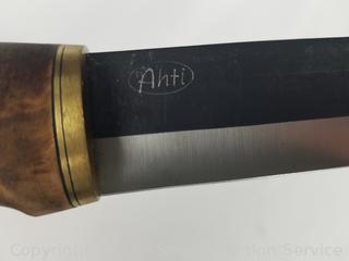 Lot #0106: Ahti Signed Finland Handcrafted Knife w/Leather Sheathe