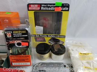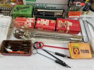 Cleaning patches, reloading scale, Lyman outside neck turner, lead round balls, reloading tool, reloading scale & more.