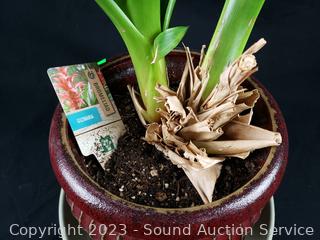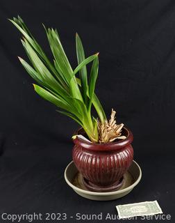 Pottery pot, 9" x 9", comes with drip plate, 20" tall plant.