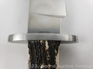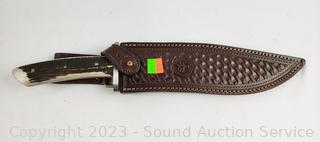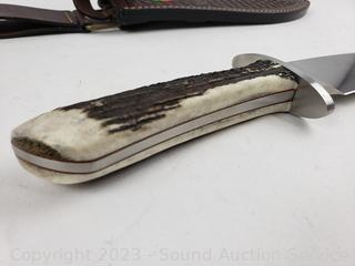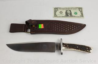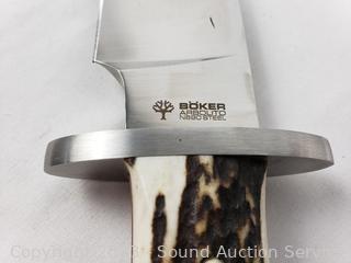 Lot #0113: Nice Boker Stag Handle Fixed Blade Chopper w/Leather Sheathe