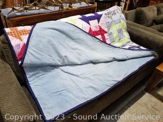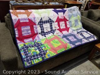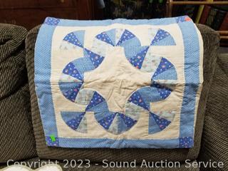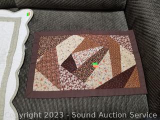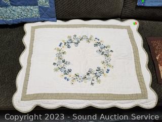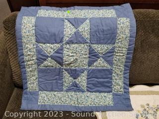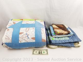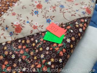 17" x 18", 24" x 25", 28" x 21" shams, 60" x 80" quilt. Some dirty spots, small holes.