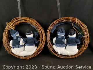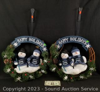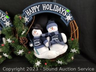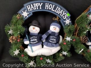 Lot #0353: 2 Seahawks Snowman 18" Holiday Wreaths