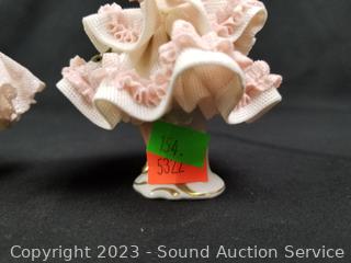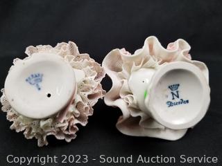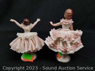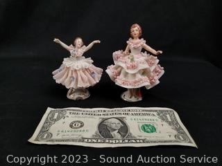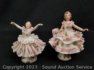 Lot #0154: 2 Vtg. Dresden Fine Porcelain Lace Figures