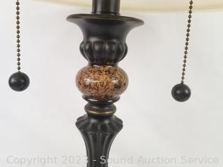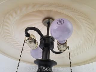 Lot #0082: Bronze Finish Glass Shade 25" Table Lamp - Works