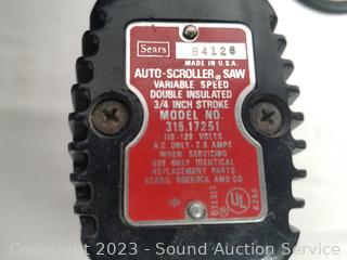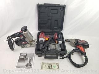 Lot #0349: Chicago 18V Drill, Elec. Craftsman 3/8" Drill, & Scroll Saw