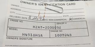 Started right up! Comes with owners & shop manual. Approx. 46" cut. Signs of wear from use.