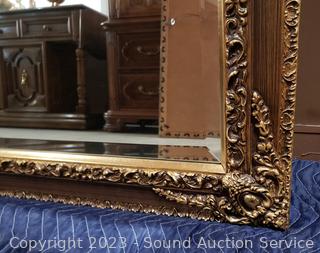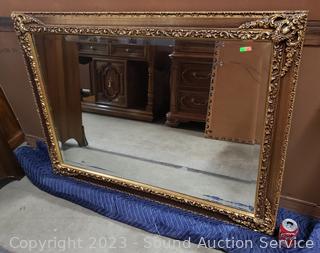 Lot #0063: Large Ornate Gold Gilt Beveled Mirror
