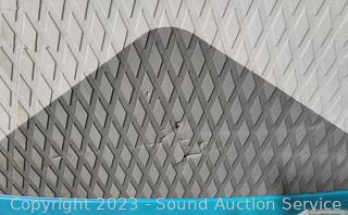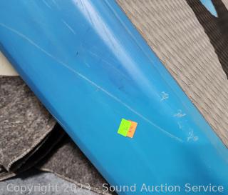 Comes with paddle, missing tether cord/strap. Signs of wear from use, scratches, etc. overall good condition. 230lb Capacity. Approx. 10ft long, 32" wide.