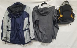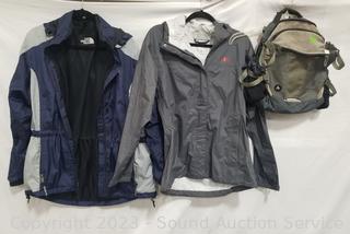 Lot #0244: North Face, Helly Hansen Jackets & Marmot Pack