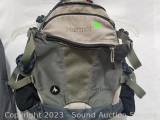 Jacket S: L/39, Marmot Highlander pack 15" x 13". Light wear from use.
