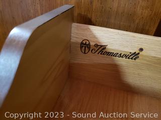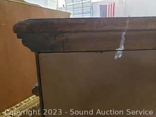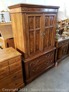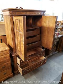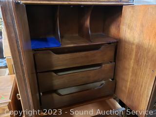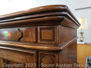 Solid wood construction, dovetail joinery. 66" H x 41.5" W x 20" D. In excellent condition.