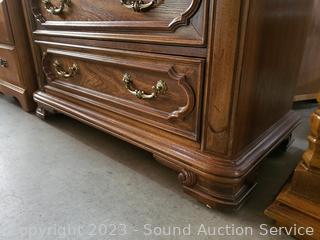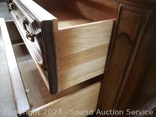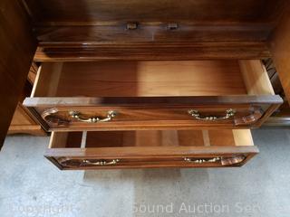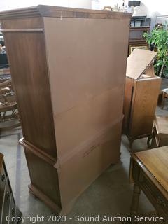 Lot #0074: Oak & Burl Finish Highboy 5-Drawer Dresser