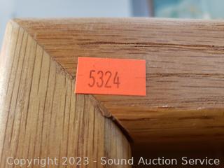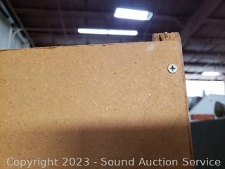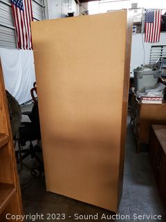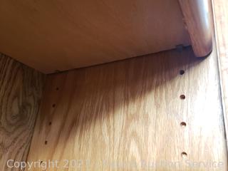 Adjustable shelves, oak veneer finish, particle board construction. 72" H x 32" W x 12.5" D. In great condition.