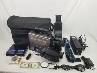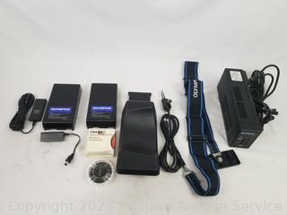 Untested, no charger. Comes with AV cables, 2 batteries, case.