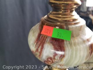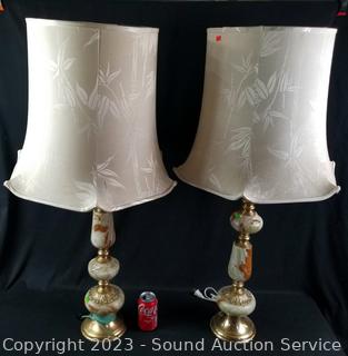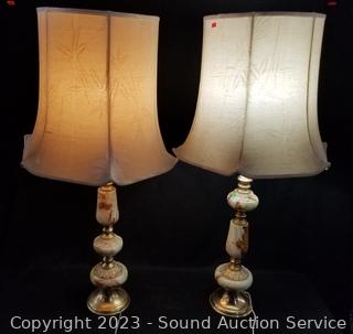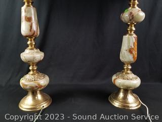 Lot #0080: Pair of Onyx & Brass Base 39" Table Lamps - Works