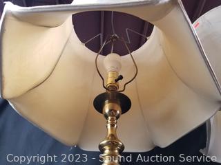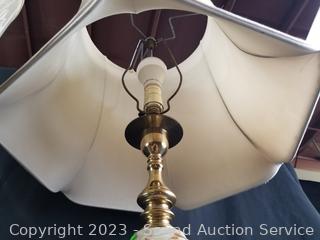 Some scuffs, wear to brass finish, overall great working condition. 3 way switches. 39" tall, 17" dia. shades.