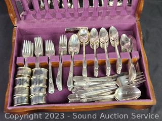 Lot #0320: Roger Bros. Adoration Silverplate Faltware Set w/Chest