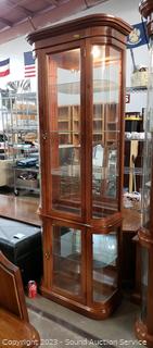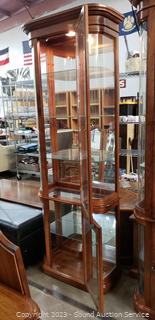 Lot #0067: Rounded Glass Lighted Mirrored Curio Cabinet