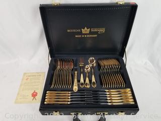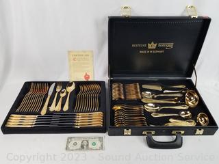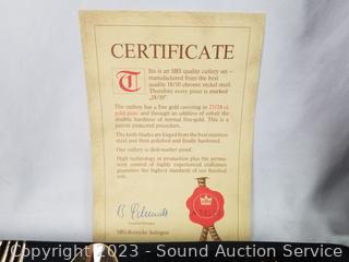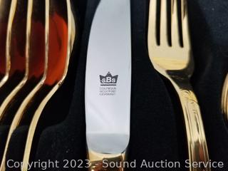 Lot #0141: SBS 23/24kt Gold Plate Flatware Set w/CoA & Case