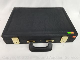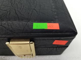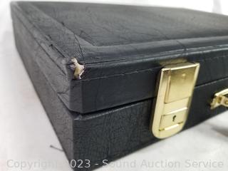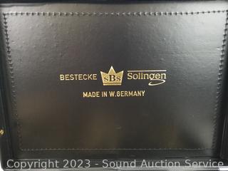 5pc Service for 12 with serving utensils. Case has damage on one corner, don't see any other issues.