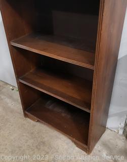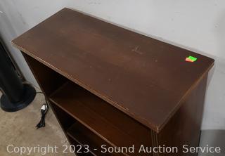 Lot #0116: Small Dark Stained 2-Shelf Bookcase