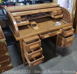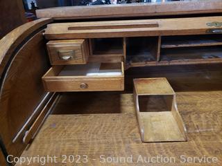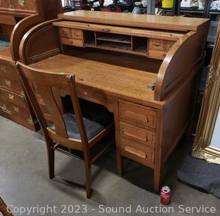 Lot #0061: Vintage Quarter Sawn Oak Rolltop Desk w/Chair