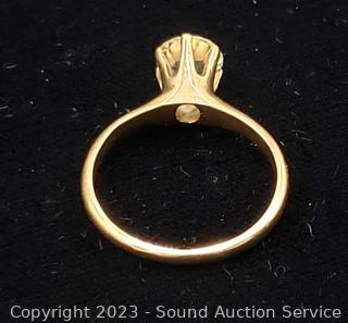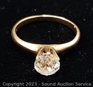Marked "ES", no jewelry mark, held on 10k Acid test. Stone tested diamond, 6.5mm/1 carat setting. TW:2g.