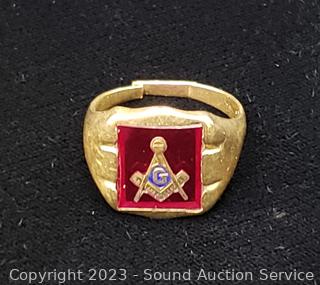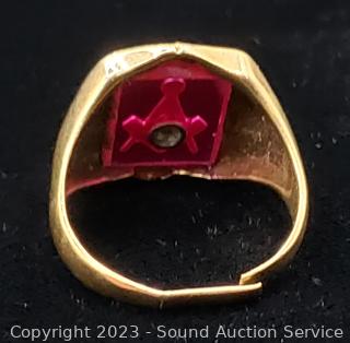 Lot #0257: Vtg. 10k Gold Masonic Ring S:10