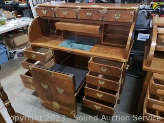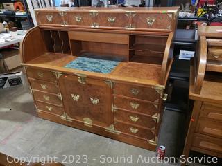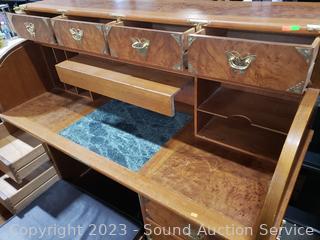 Lot #0059: Vtg. Asian Burl & Teak Roll Top Desk
