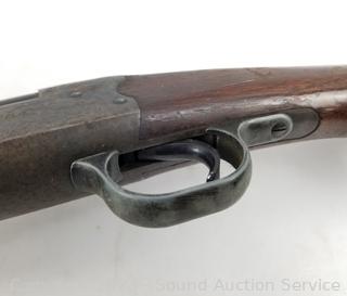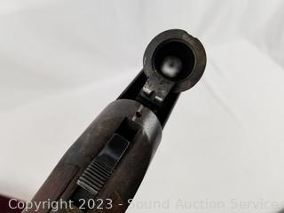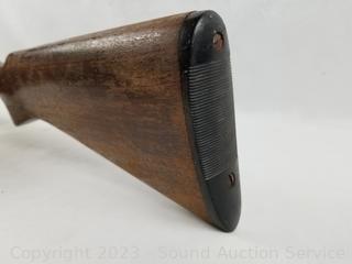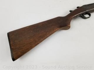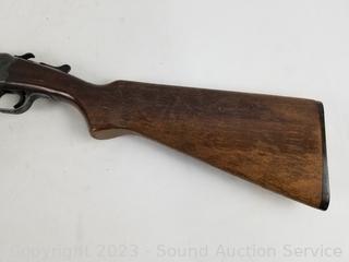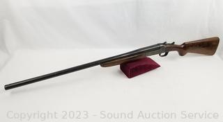 Single shot, appears to be in firing condition, hammer doesn't appear to be hitting firing pin. 44" long, 28" barrel. Model 10-SB94-B. Don't see a serial. Various scuffs & wear to finish. Preview at Sound Auction Service. Picked up at South Sound Guns Lacey WA. In accordance with U.S. law, this lot must either be picked up at South Sound Guns Lacey, Washington or shipped to a U.S. licensed firearms dealer (FFL) of the buyer's designation. Handguns will be shipped via USPS Priority Mail; shotguns & rifles will be shipped according to South Sound Guns standards and in accordance with U.S. laws. All shipping and handling charges will be paid by the buyer and billed by South Sound Guns. All transfer fees will be paid by the buyer at South Sound Guns at the price of $20 per item. Any and all waiting periods will be determined by South Sound Guns. Buyers must present copy of Sound Auction paid invoice.